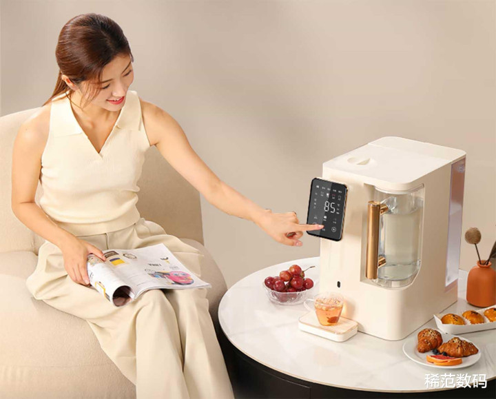 使用了真空热罐技术的加热热水技术,容积1.5L。共有5档调温设计,通过龙头顶部的触摸按键可以选择切换,同时安全童锁功能也是具备的。
