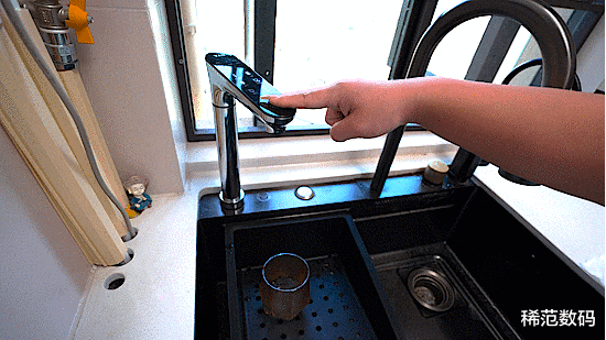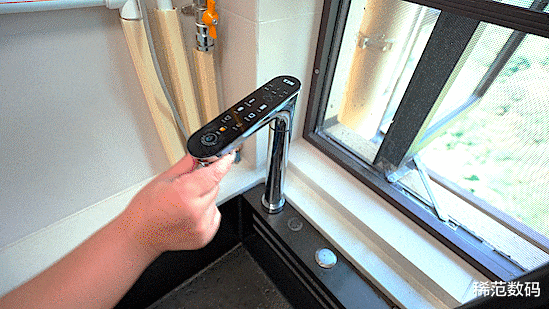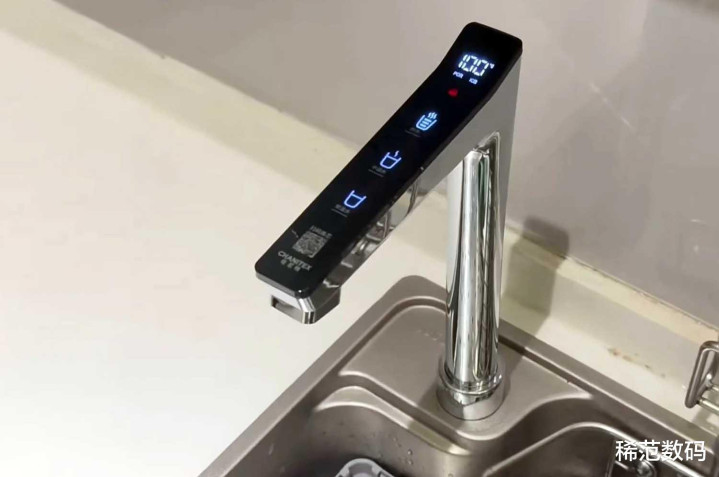 另外,它的出水龙头也是满满的科技感,水龙头上有高清多彩的LCD智能屏,可以实时显示出水质、水温、出水量、滤芯提醒、童锁等。并且调节精准,反馈清晰,抗干扰,防误触。就算是在厨房手湿了,油了也能轻松控制操作。