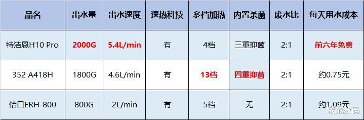 另外,在出水量和出水的速度上,如果家里人口较多,地处南方,喝水也较频繁,那么建议优先考虑出水速度快且量大的,特洁恩H10 Pro的2000G则适合更多的场景,即使家里人口较多也能轻松应付。同时即时加热和抑菌技术也要重点考虑,毕竟RO膜虽然可以过滤掉细菌,但过滤扣的水残存在净水器里还是有滋生细菌的可能性。同时我们还要考虑下滤芯的寿命,即每天的使用成本。